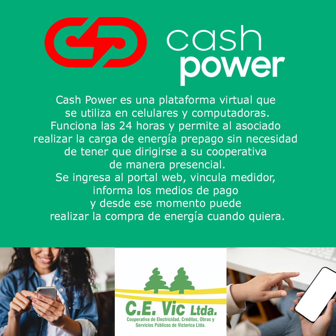 “Cash Power es una plataforma virtual que se utiliza en celulares y computadoras. Funciona las 24 horas y permite al asociado realizar la carga de energía sin necesidad de tener que dirigirse a su cooperativa de manera presencial. Se ingresa al portal web, vincula medidor, informa los medios de pago y desde ese momento puede realizar la compra de energía cuando quiera”.