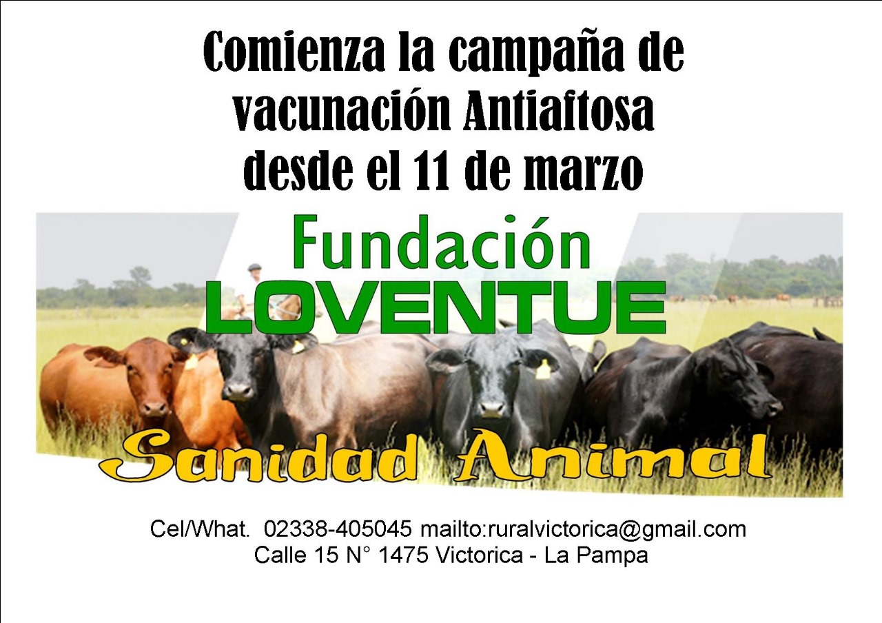 El Ministerio de la Producción a través de la Dirección de GanaderÃa de la SubsecretarÃa de Asuntos Agrarios informó a los productores de la provincia que este 11 de marzo próximo iniciará la primera Campaña Anual de Vacunación contra la Fiebre Aftosa la cual abarca a todas las categorÃas bovinas y bubalinas y se extenderá hasta el 10 de mayo. En simultáneo se efectuará la vacunación de las terneras de entre 3 y 8 meses, contra la brucelosis.