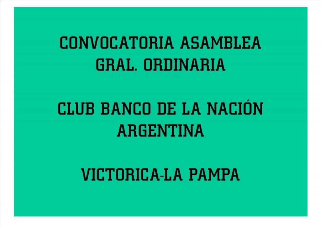 Convocatoria Asamblea General Club Banco Nacion de Victorica - La Pampa