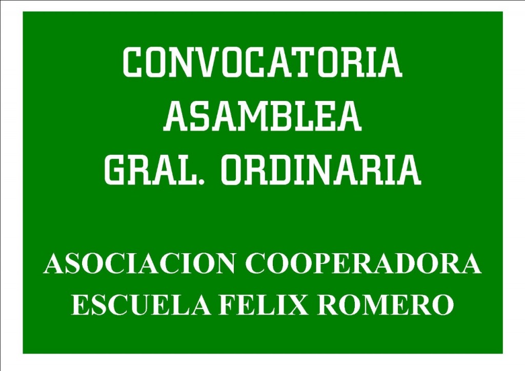 Convocatoria Asociación Cooperadora Escuela "Felix Romero" Victorica