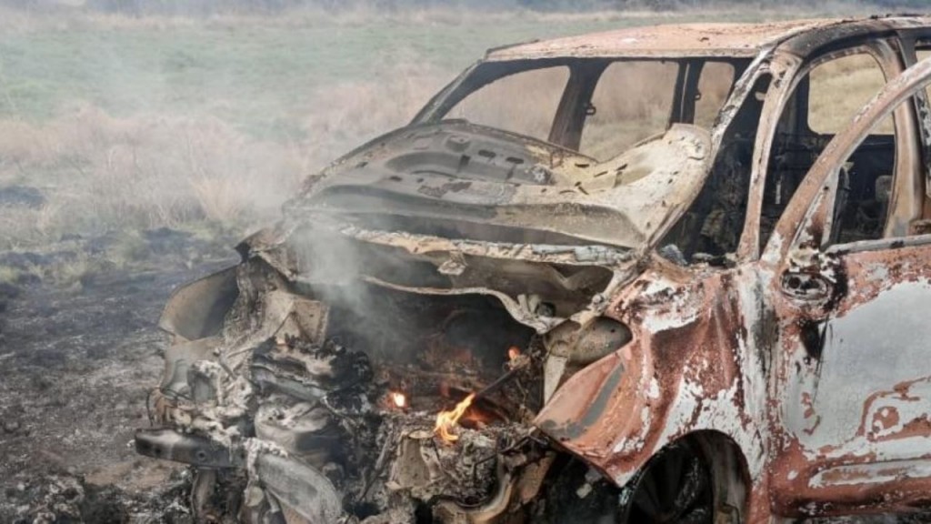 Un Citröen C3 de un vecino santarroseño agarró fuego este domingo a la mañana y se quemó por completo, luego de chocar contra un jabalí en plena Ruta Provincial 14.