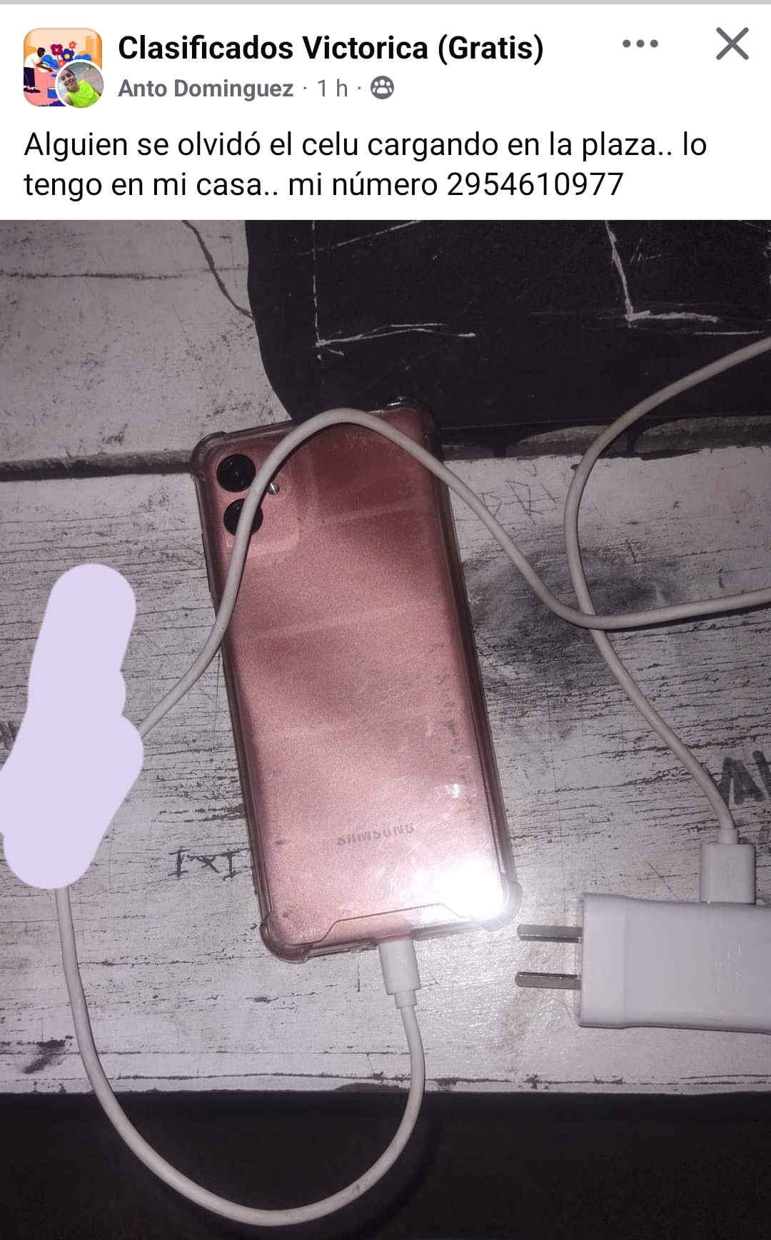 En Victorica se dió está particular situación dónde,como se acostumbra en lugares públicos, están disponibles los lugares con wifi y puestos para cargar los equipos móviles. Este fue el caso y ahora alguien encontró el equipo con cargador y busca al dueño/ña.